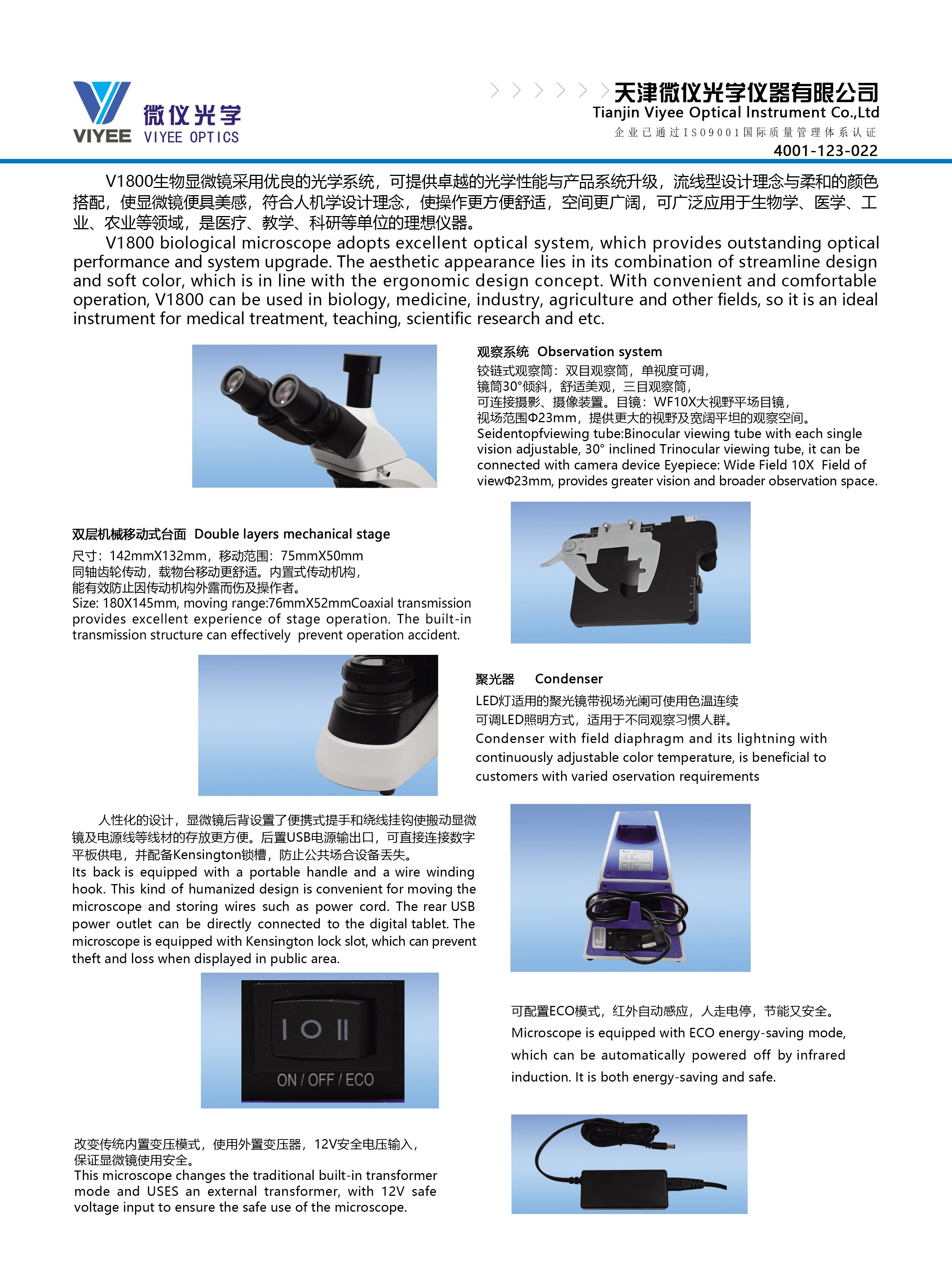 6、显微镜支持USB接口输出电源,方便数字平板摄像头从显微镜直接取电,减少复杂的外部线路,安全方便。